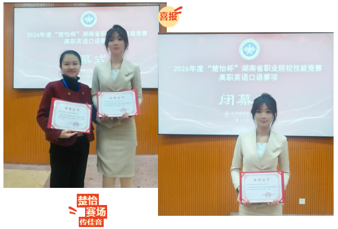 2023-03近日,湖南省教育厅、湖南省人力资源与社会保障厅主办的2023年度“楚怡杯”湖南省职业院校技能竞赛英语口语赛项成功落下帷幕。来自全省60多所院校的31名英语专业组选手和61名非英语专业组选手同台竞技。经过激烈角逐,我校商务英语专业选手李怡凤获得专业组一等奖第一名,并成功入围国赛选拔赛,法语专业选手朱子鹤获得非专业组二等奖第一名,这是继2022年我校商务英语专业学生彭震斩获全国职业院校技能大赛英语口语赛项三等奖...