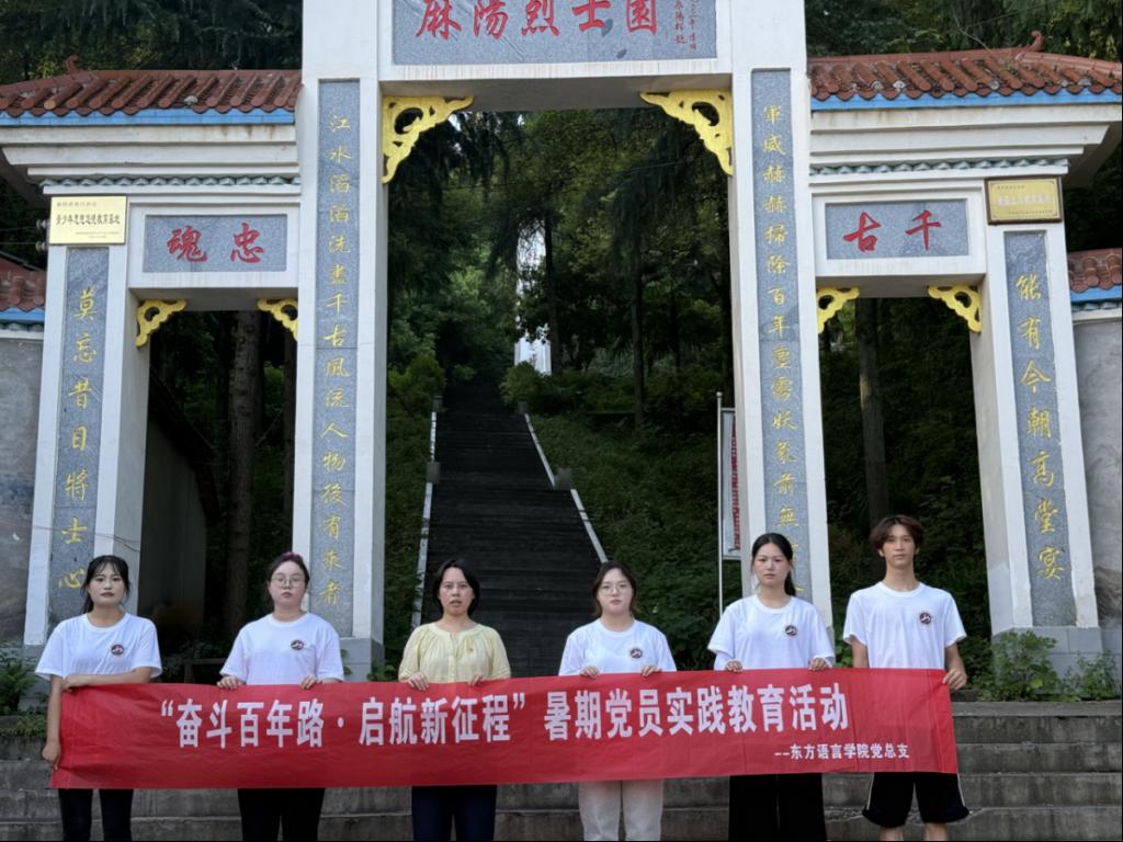烈日虽炽,赤心愈坚。在东方语言学院学生党支部书记的带领下,实践团全体队员怀着崇敬之情,踏入麻阳烈士陵园。苍松翠柏间,烈士纪念碑巍然矗立,队员们肃立默哀,向为民族独立、人民解放献出生命的英雄先烈鞠躬行礼。