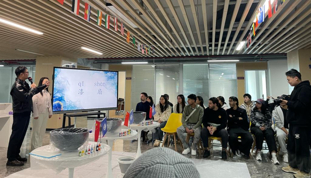 Changsha, November 25, 2025 – The International Education School of Hunan College of Foreign Studies (HCFS) recently hosted a unique Chinese Corner event titled “Elegance of the Lacquer Fan, Painting Cultural Chapters.” The event brought together international students and faculty to immerse themselves in and experience the traditional Chinese art of lacquer fan creation.