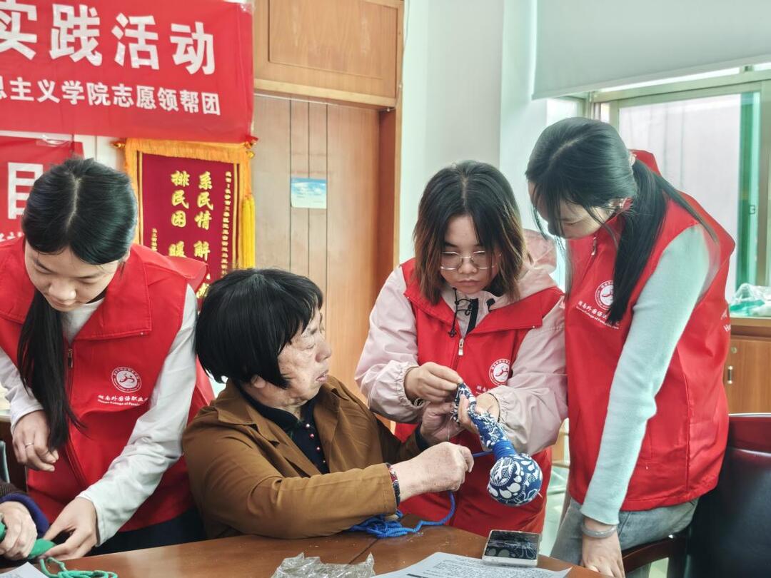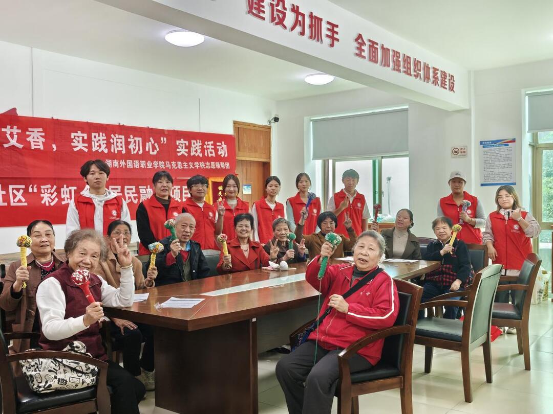 (转自华声在线)为进一步弘扬中华民族尊老、敬老、爱老的传统美德,丰富社区老年人的精神文化生活,2025年10月31日,湖南外国语职业学院马克思主义学院的章佳、殷雨萍两位教师,组织志愿领帮团志愿者联合定王台马王街社区、同行者社工机构及长沙人寿保险公司,共同开展“巧手传艾香 实践润初心”老年人关爱服务活动。活动以“行走的思政课”为载体,既为社区老人送去温暖,也让学子在实践中锤炼品格、涵养情怀。