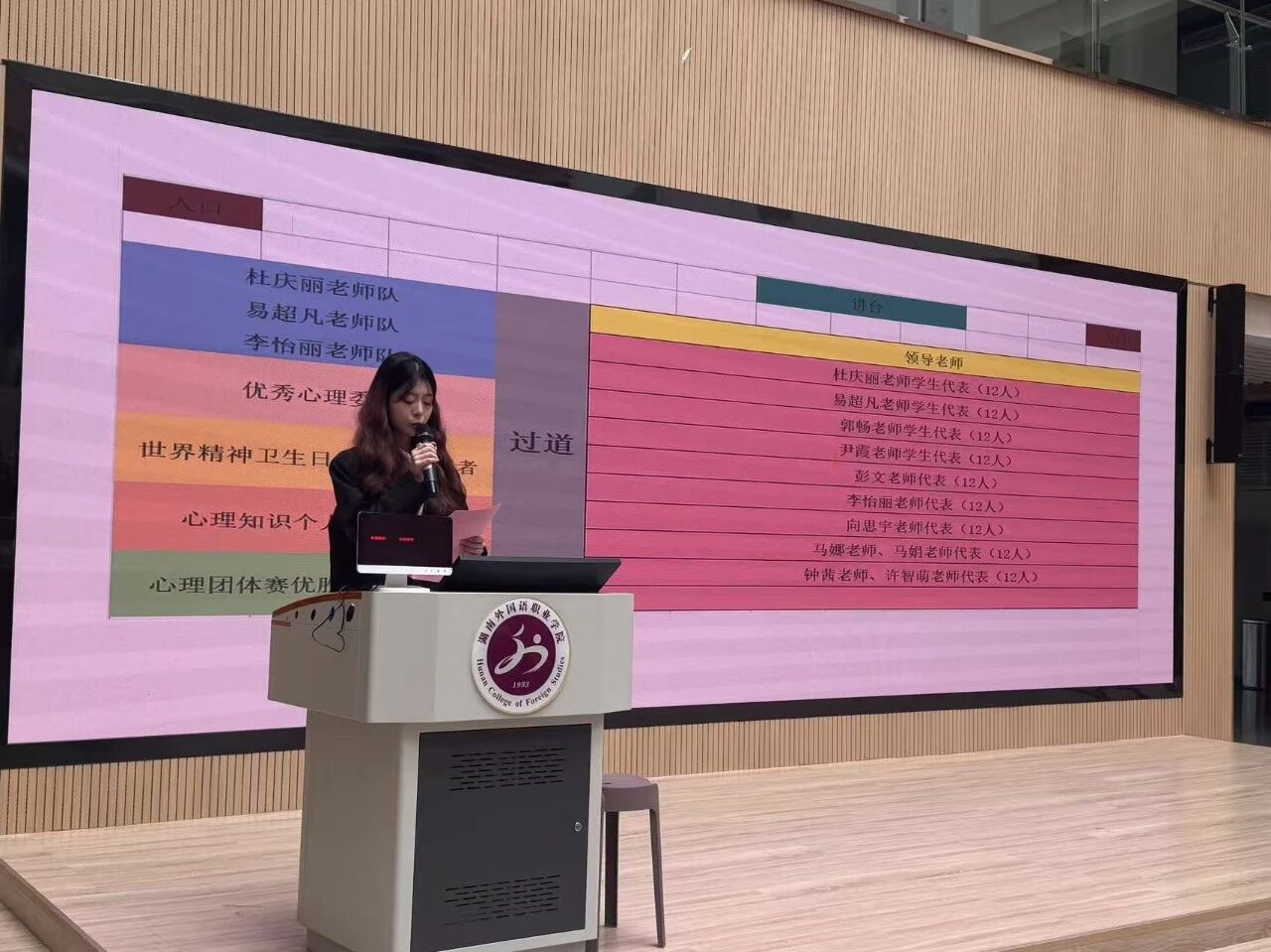 为普及心理健康知识,提升同学们的心理素质,大家齐聚一堂,共同迎来本次第二届心理知识大赛决赛!莅临本次比赛的领导老师有:校心理健康中心主任彭秀峰、党总支副书记卢亚婷、团总支书记尹霞、筑梦志愿者协会指导老师吴星星、学生党支部书记马娟、院心理健康部指导老师彭文和各位辅导员老师。