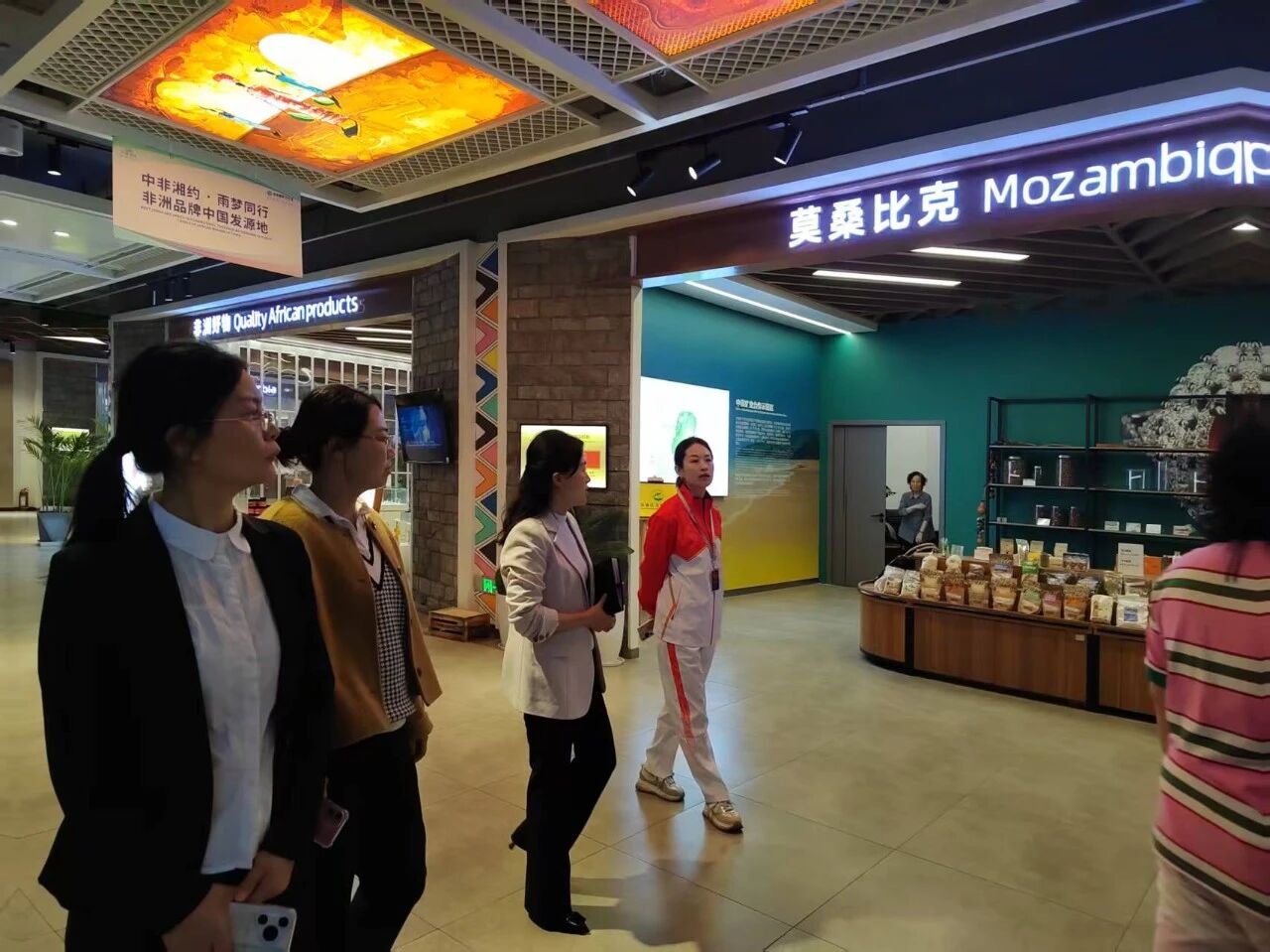 本次访问受到了嘉洲公司多位领导的热情接待,调研伊始,我院一行在执行总裁许子墨的陪同下,开启了一场主题鲜明的“业务动线观摩”。从承载公司发展历程与企业文化的形象墙,到生动展示中非经贸成果的常设展厅,再到充满实战气息的“非洲好物”商品管理区,教师们零距离感受了企业的运营脉搏与创新活力,对跨境电商的产业链条与核心岗位能力要求有了更为直观和深刻的理解。