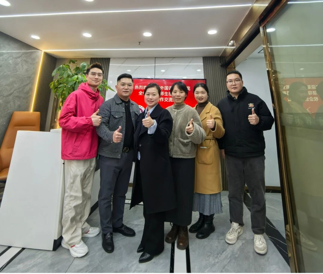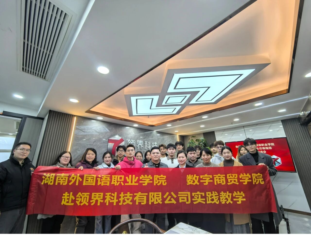 为深入推进产教融合,精准对接行业人才需求,助力学生在实践中感知产业脉搏。近日,湖南外国语职业学院数字商贸学院院长刘芳、副院长罗岩,携跨境电子商务全体专业教师,与跨境电子商务、国际贸易、市场营销三个专业的学生代表,共同前往长沙领界科技有限公司(以下简称“领界科技”)开展研学实践活动。领界科技总经理陈旭、胡辉标一行热情接待,校企双方共话育人新路径,共探跨境电商发展新机遇。