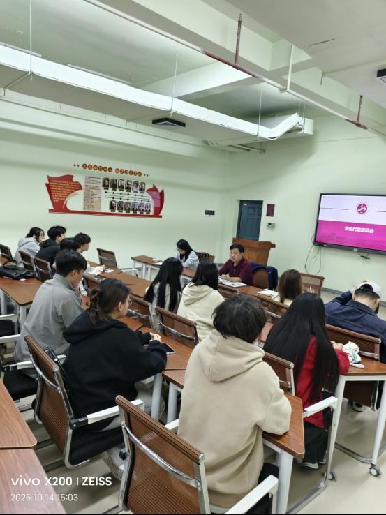 为精准把握学生思想动态、及时回应成长诉求,搭建校生高效沟通桥梁,10月14日,学生代表座谈会在我校图书馆505会议室举行。41名来自7个学院不同年级的学生代表参会,学生工作处负责人邵崇云、校团委书记邹莎、学工干事吴凤至出席会议。
