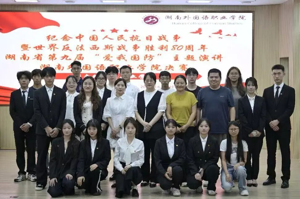 为推动国防教育深入普及,激发我校赓续红色血脉、热爱人民军队、矢志报国强军的政治热情,于2025年6月19日下午14:00,在图书馆报告厅隆重举办了纪念中国人民抗日战争暨世界反法西斯战争胜利80周年湖南省第九届“爱我国防”主题演讲湖外决赛。决赛评委由湖外科研处处长杨玲老师、湖外工会副主席吴亚兰老师、湖外党群工作处副处长曾朝霞老师担任。