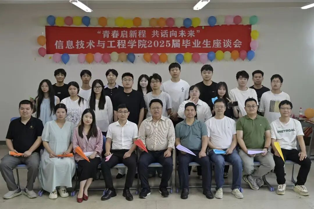 为推动同学总结成长经验,激发创新奋斗热情,能够凝聚发展共识,在交流中传承校园精神,在探讨中明晰未来方向。信息技术与工程学院在2025年6月10日下午三点半在北1—645教室隆重举办了“回首校园路,共话师生情”毕业生座谈会,出席本次活动的领导和老师有:湖南外国语职业学院曾谊晖副校长、我院周东翔院长、党总支副书记习超书记、学生党支部书记舒容芮老师、组织专员薛栋老师、辅导员蒋乐老师、唐波教授、谭捷老师、任课教师韦好老师以及参加本次活动的优秀毕业生们。
