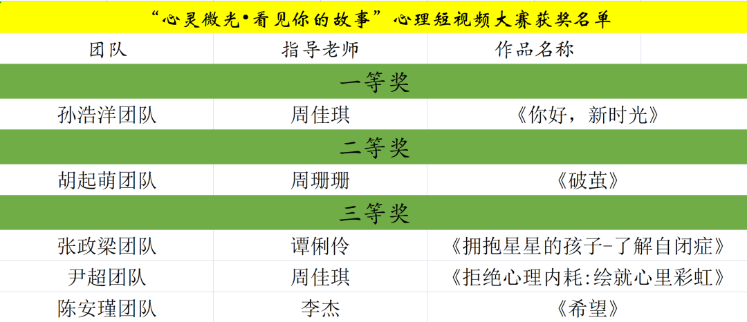 短视频大赛获奖名单