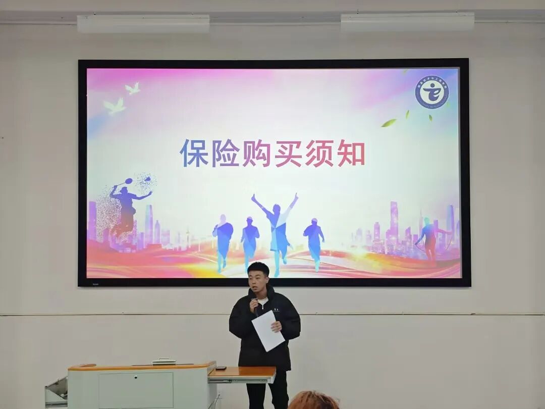 张铭朔同学对校运动会流程和注意事项进行了详细讲解,同时建议参赛同学购买保险,可联系辅导员办理,应对意外风险。