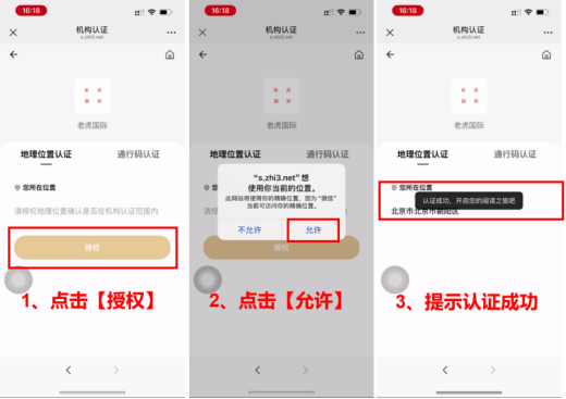 3、地理位置认证 点击【授权】—【允许】获取您的地理位置。
