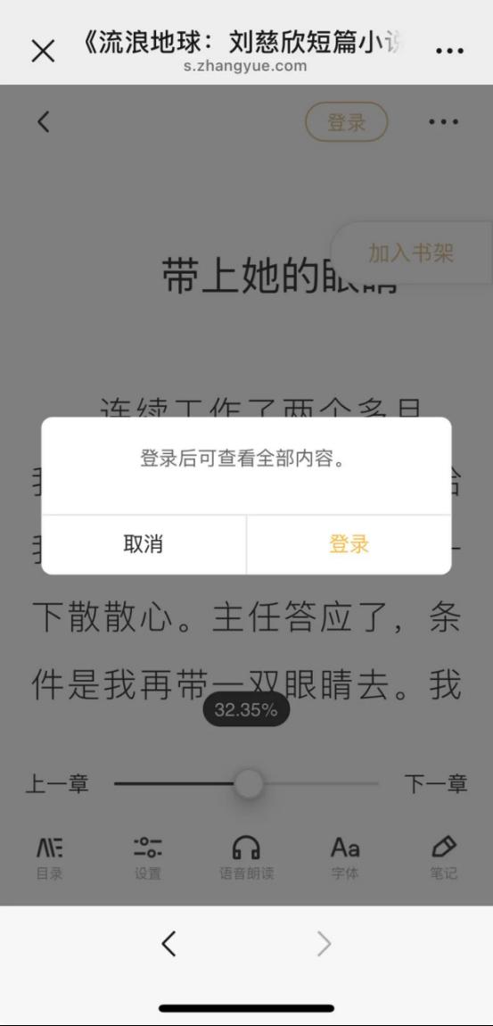 第三步:试读20%后点击登录,输入相应信息阅读整本书