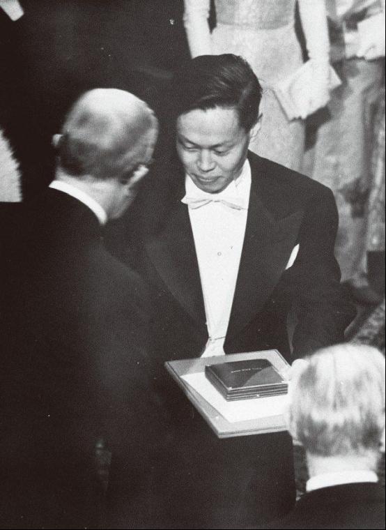 杨振宁从瑞典国王古斯塔夫六世·阿道夫手中接受诺贝尔奖章