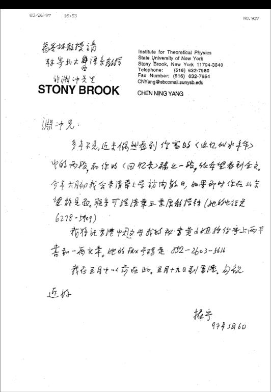 在《邓稼先献身科学的故事》中,记载了这两位科学巨子半个多世纪的动人友谊。1971年杨振宁首次回国,见到阔别22年的挚友邓稼先。在去上海的路上,杨振宁忍不住问:“稼先,我在美国听说,中国的原子弹有美国物理学家参加搞,是真的?”邓稼先请示后郑重告诉他:“确实没有。”事后,邓稼先特意写信给杨振宁,在信的结尾动情地写道:“但愿人长久,千里共同途。”