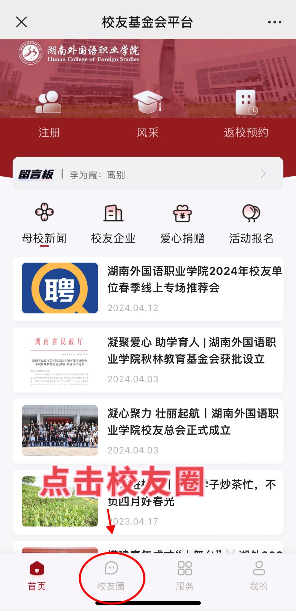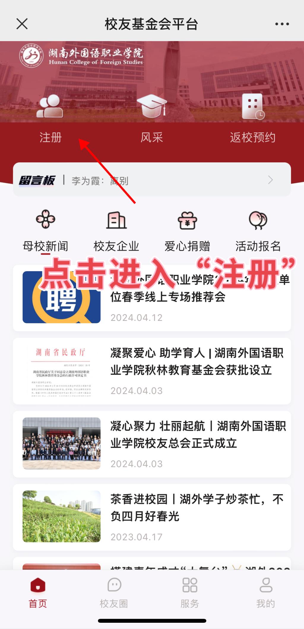 湖南外国语职业学院校友云平台已开启,快来注册!!!