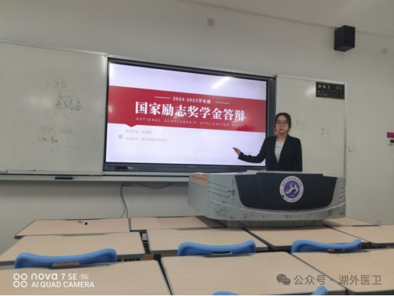 四个答辩教室中,参评学子结合专业特色,从多维度展现了新时代医卫学子的风貌。家庭情况分享中,同学们坦诚讲述成长背景,虽部分同学面临经济压力,却始终以反哺家乡、深耕专业的决心面对挑战,尽显韧性;学业上,同学们分享了专业的高效学习方法、获奖经历等,展现理论与实践的结合;任职方面,学子们担任班级干部、社团负责人等,在组织健康科普、实践活动中锻炼能力,平衡学业与工作的经验也为他人提供借鉴。