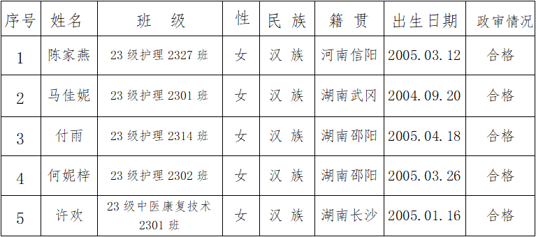 经党支部教育、培养和考察,并经支部党员大会讨论,党总支初审并报上级党委备案,拟接收以下同志为预备党员,现将有关情况予以公示: