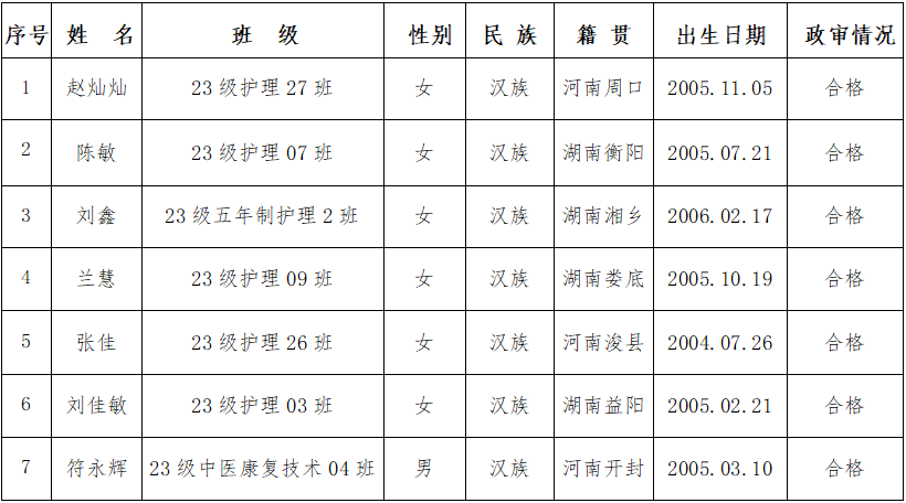 经党支部教育、培养和考察,并经支部党员大会讨论,党总支初审并报上级党委备案,拟接收以下同志为预备党员,现将有关情况予以公示: