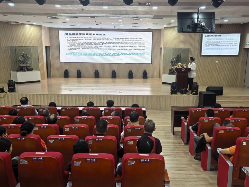 为持续强化校园食品安全管理,落实各方主体责任,提升餐饮服务从业人员的专业素养与规范操作水平,切实保障师生饮食安全与身体健康,9月24日,湖南外国语职业学院后勤资产处在图书馆一楼报告厅组织召开了2025年秋季学期食品安全专题培训。学校各食堂全体员工、校内超市及餐饮服务点工作人员参加了本次培训。
